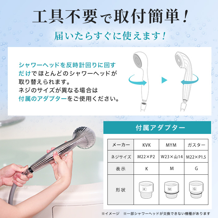 ●輸入品のシャワーホースには、本品が取り付けられない場合や、取り付けられても水漏れが発生する場合があります。