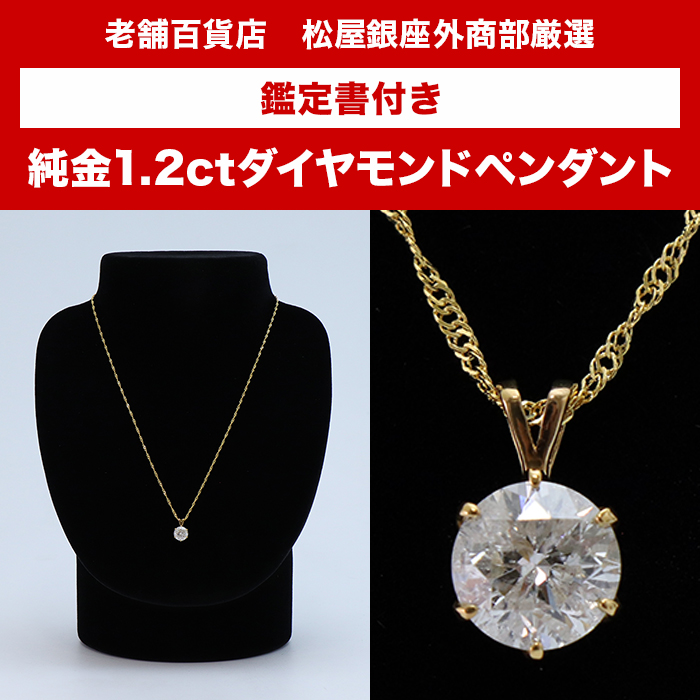 1.2ctダイヤモンドペンダント×1、鑑定書×1、品質保証書(松屋銀座外商部発行)×1、ロゴ入りケース×1