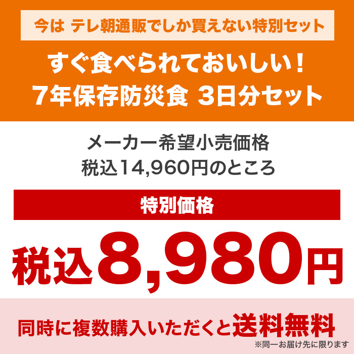 すぐ食べられておいしい!7年保存できる防災食3日分セット命をつなぐ!1人3日分の保存食 7年間の長期保存。
