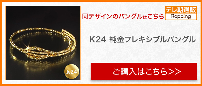純金は18金に比べ純度が高く柔らかいので激しい衝撃、摩擦を避け丁寧なお取り扱いをお願いします。お風呂、水仕事の時には必ず外してください。