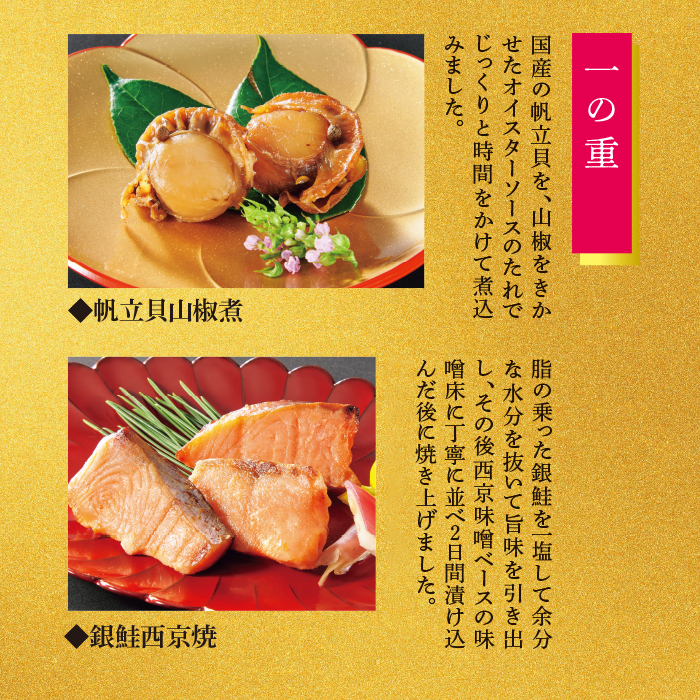 ※重箱に杉材を使用しているため、多少杉の匂いがしますが、おせち具材に影響はございません。