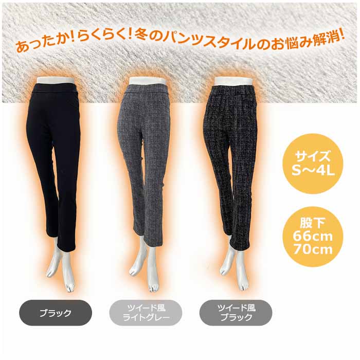 冬でもあったか裏毛布らくらくパンツ3色組(同サイズ) 股下70cm
