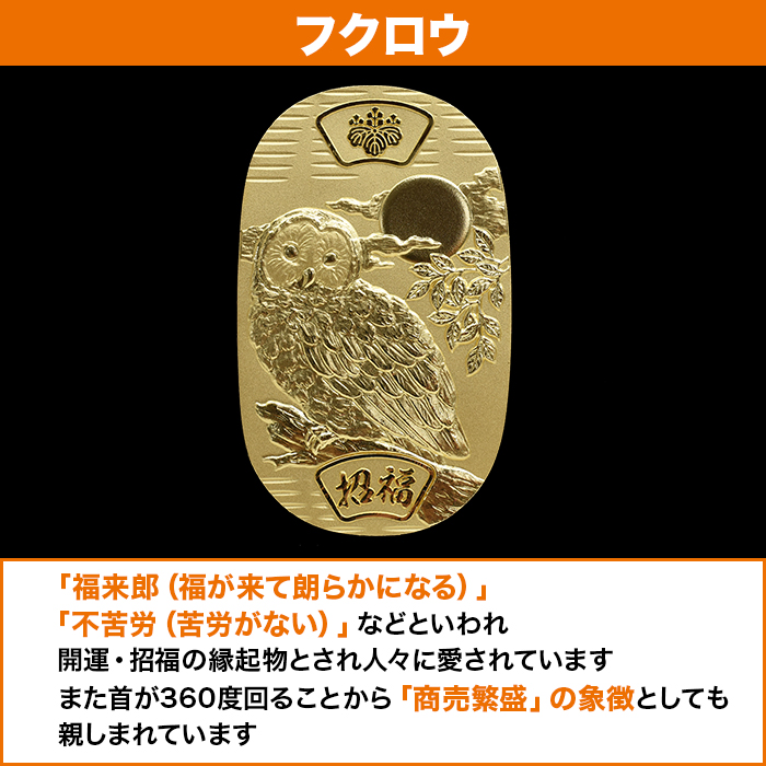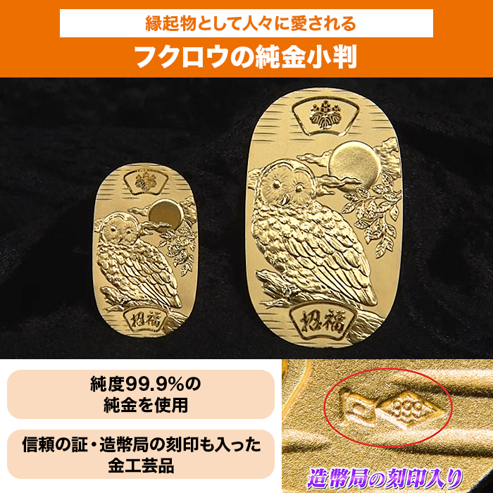 ■縁起物として人々に愛される フクロウの純金小判純度99.9%の純金を使用