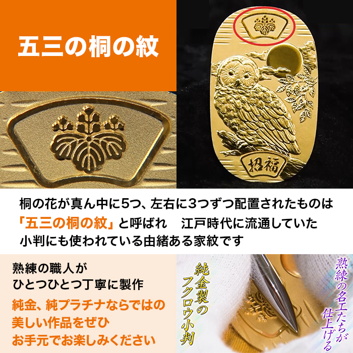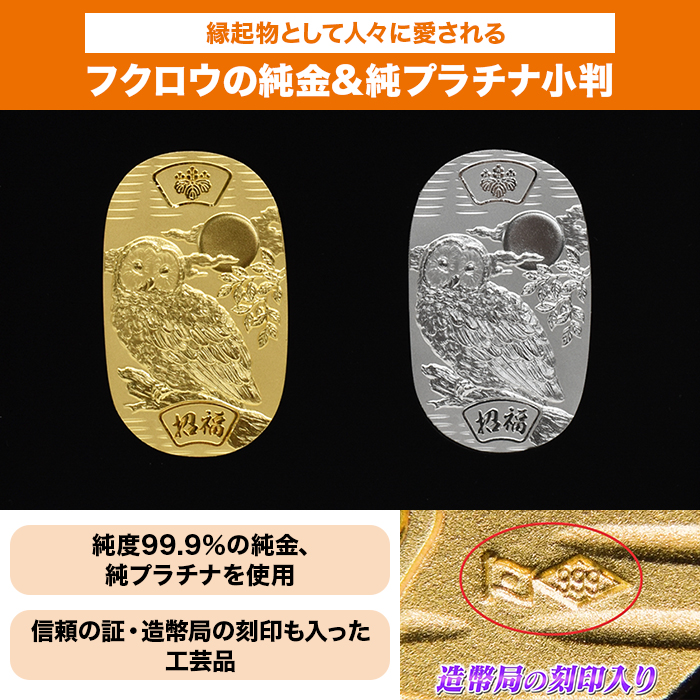縁起物で人気のフクロウデザイン!造幣局の刻印入り小判