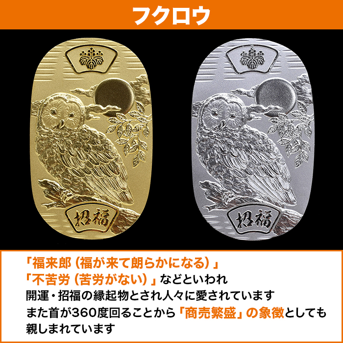 縁起物で人気のフクロウデザイン!造幣局の刻印入り小判