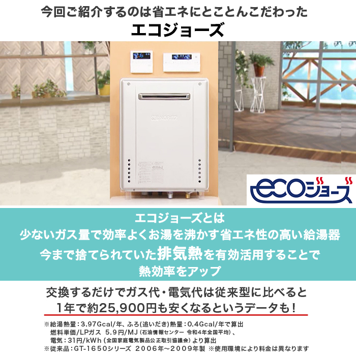 ※給湯器が設置パイプシャフトの場合など設置状況により、エコジョーズタイプで対応できない場合は別機種をご案内致します。※設置状況により別途費用がかかる場合がございます。※設置機種により納品までお時間頂く機種もございます(現場調査時に説明致します)※設置状況にもよりますが、号数アップのご相談も承ります。