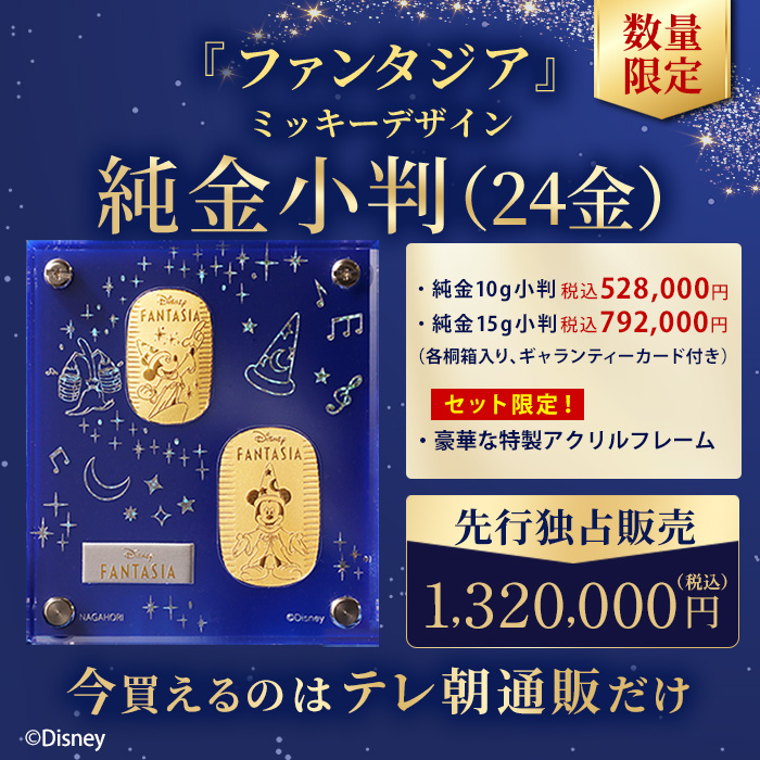 純金(24金)を贅沢に使用したミッキーデザインの純金小判!豪華な特製アクリルフレーム付き