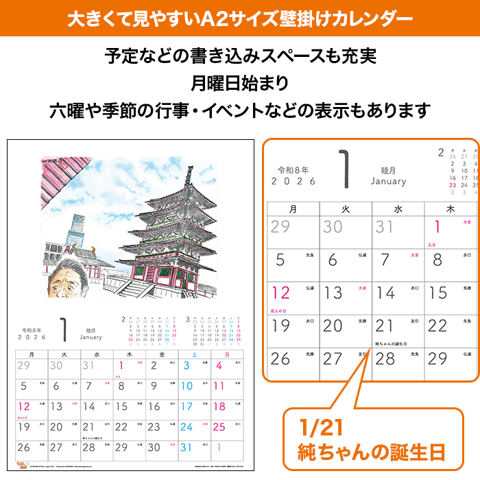 表紙1枚+カレンダー12枚(1ヵ月1枚)