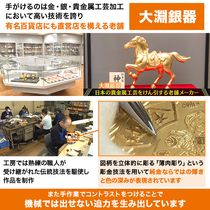純金製ならではの美しい作品をぜひお手元でお楽しみください。