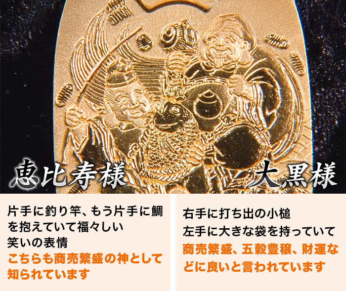 福の神の代表 大黒恵比寿の朗らかな表情が縁起の良い純金製小判
