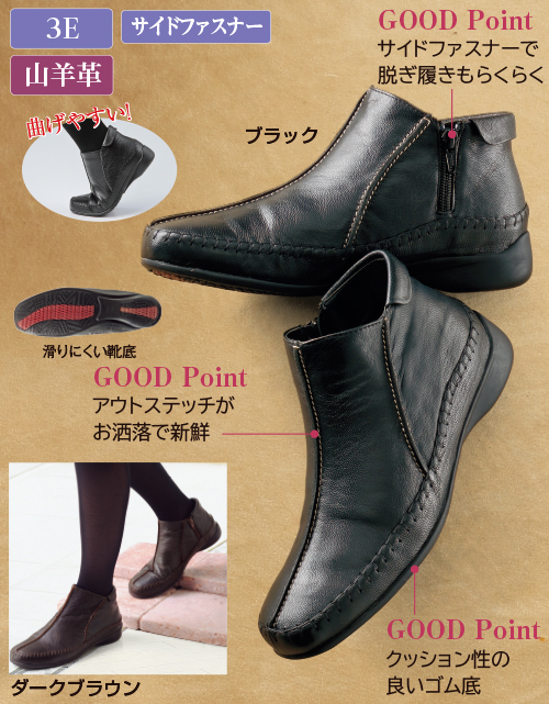 フラットでクッション性が良い靴底で、柔らかな履き心地のブーツ