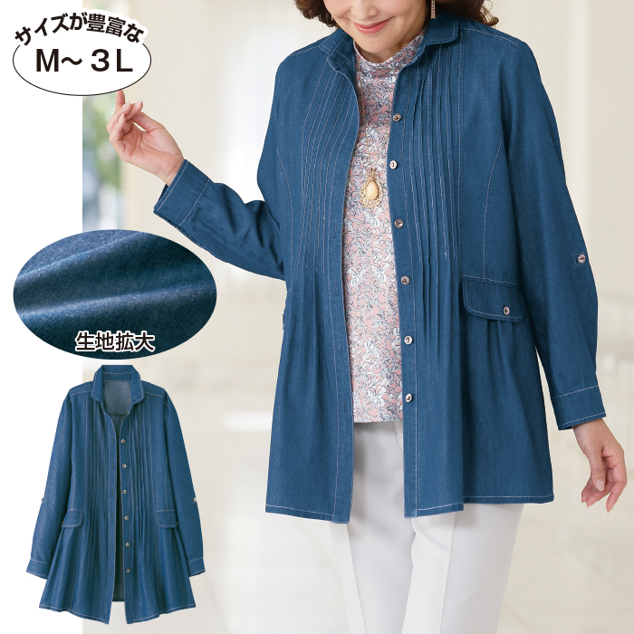 しなやかで艶のある柔らかデニム素材のゆったりジャケット