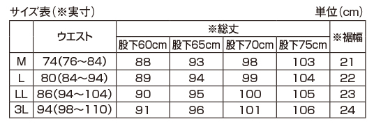 ウエスト総ゴム、前左右・後ろ左右ポケット付、前ファスナー