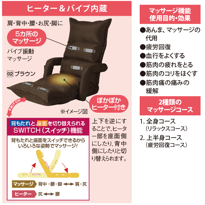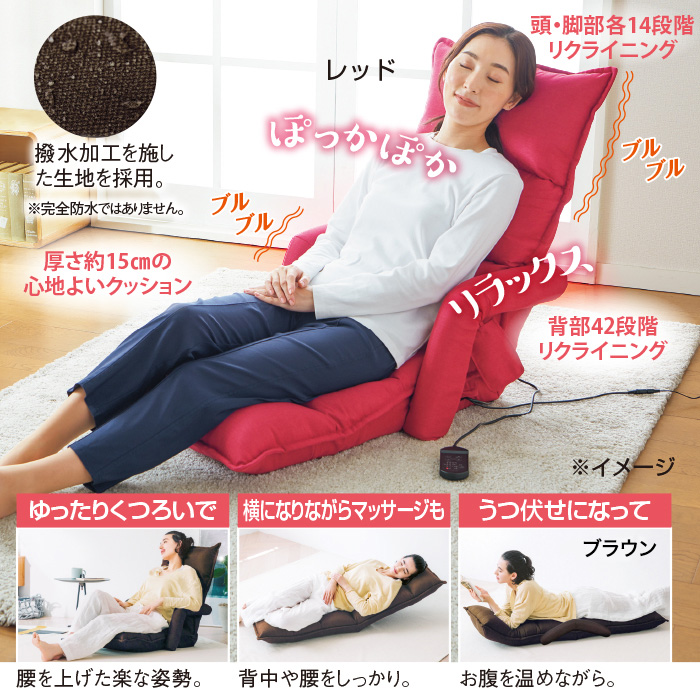 温めながらコリをほぐす!快適マッサージ座椅子。
