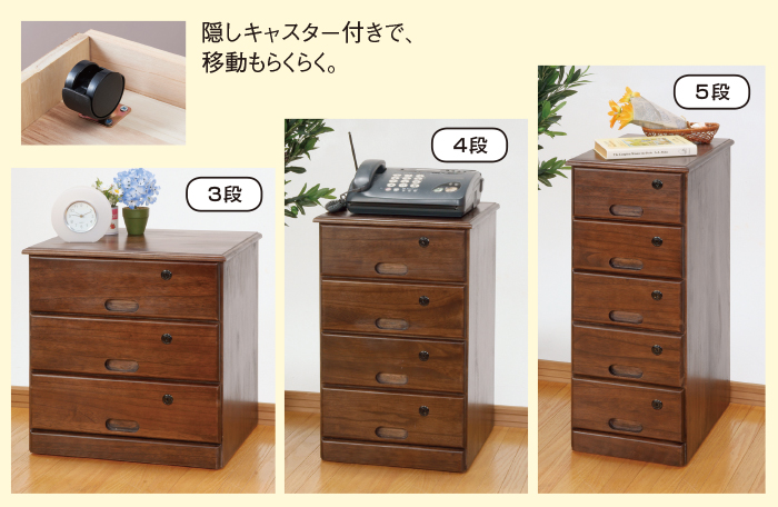 全段鍵付チェスト(隠しキャスター付)4段