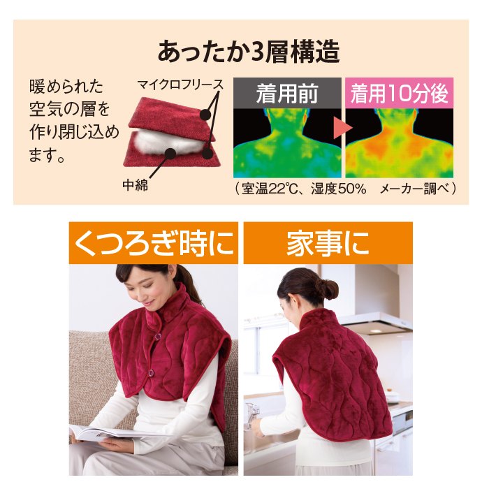 まるで毛布のようなあったか素材で首・肩・背中がぬくぬく暖か
