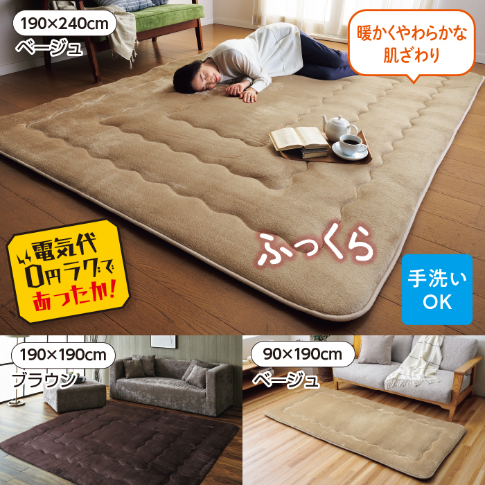 ■商品サイズ190×190cm■商品重量約4.2kg■材質・素材・成分表地:ポリエステル100%、裏地:ポリエステル100%(不織布)中材:ポリエステル100%、アルミシート、ポリエチレンシート■商品仕様厚さ:約3cm、表面に撥水加工、裏面にすべりにくい加工■洗濯表示・お手入れ方法手洗い■生産国中国
