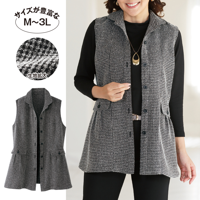 やわらかな風合いの変化織り素材で仕立てたベスト。1枚で上品な装いに。