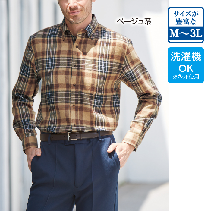 暖かく肌ざわりが心地よい、チェック柄の起毛シャツ。