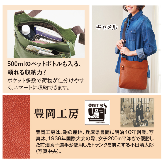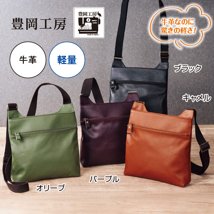 表地:牛革、裏地:ポリエステル、ショルダーベルト:ポリエステル