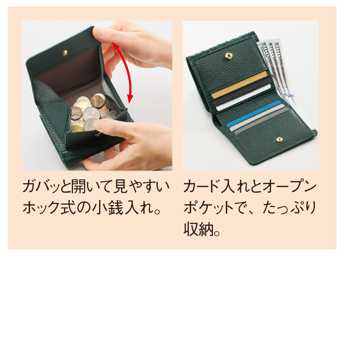 外側:ホック式小銭入れx1