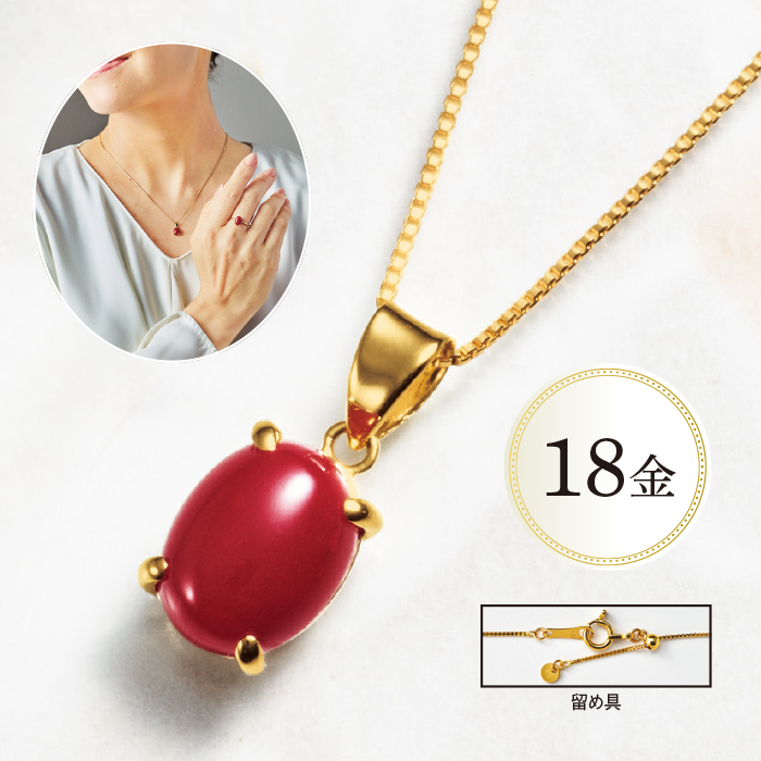 血赤珊瑚:約8×6mm、18金(枠・チェーン)