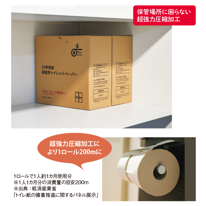 災害時に備えて、10年備蓄可能なトイレットペーパー。