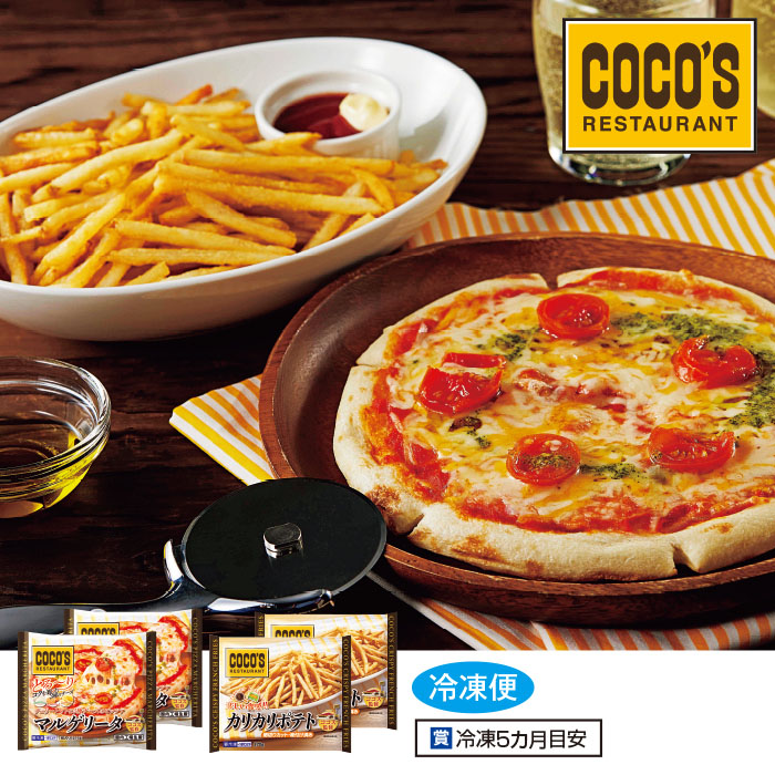 ■セット内容ココス監修 チェリートマトと3種チーズのピッツァマルゲリータ215g、カリカリポテト270g×各2個■材質・素材・成分アレルギー特定原材料8品目:小麦、乳■商品仕様調理方法:[ピザ]オーブン・オーブントースター、[ポテト]揚げる・焼く・オーブン、オーブントースター■保証期間/賞味期限お届け時賞味期限(目安):冷凍5カ月■生産国加工地:日本