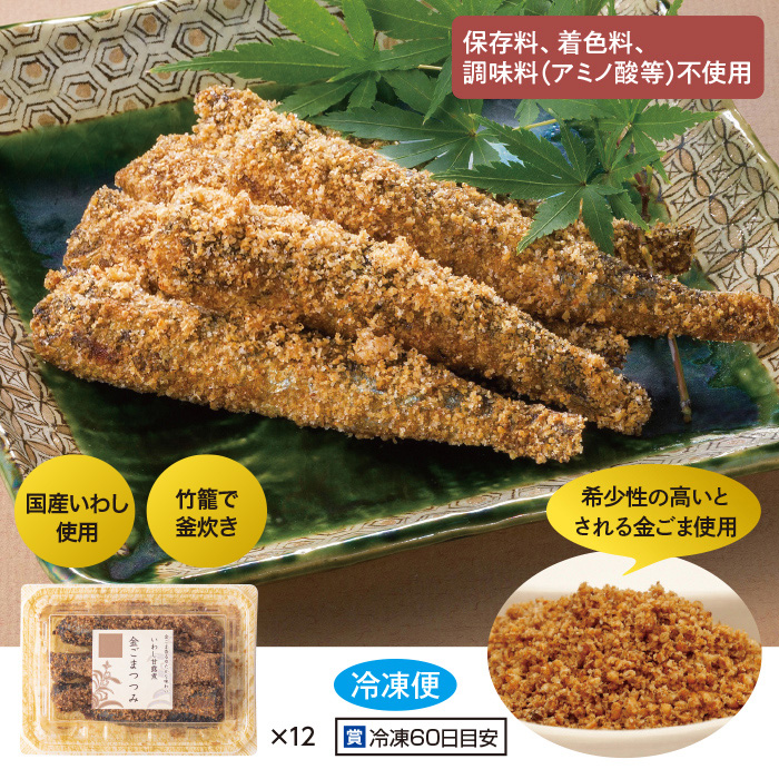 いわしの甘露煮を、風味豊かな金ごまで包みました!
