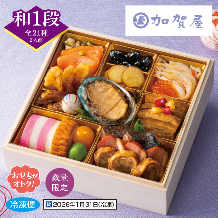 大ぶりのあわびが目を引く。加賀屋監修のおせち。