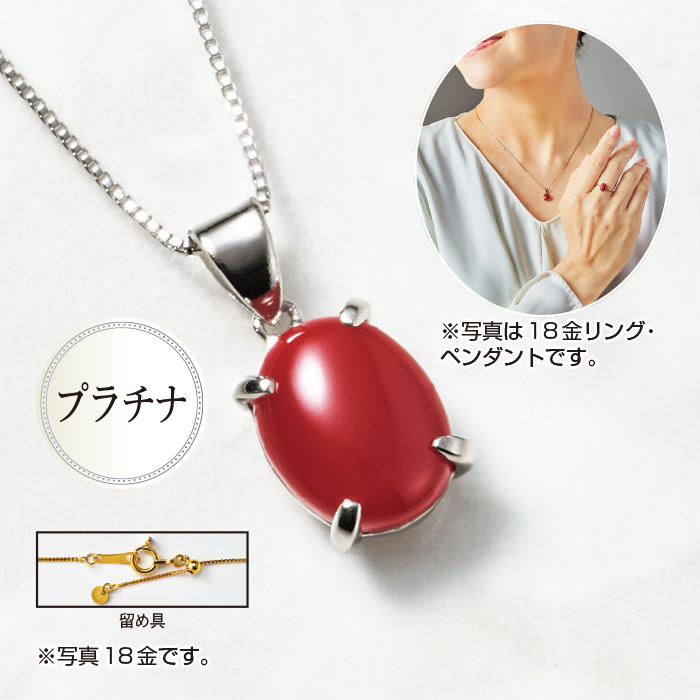 血赤珊瑚:約8×6mm、枠:プラチナ900、チェーン:プラチナ850)