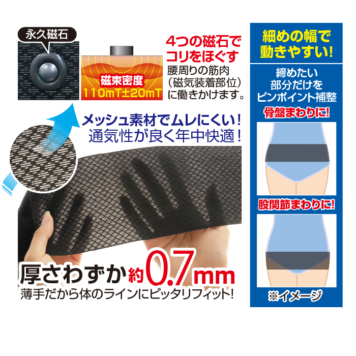 磁気の力×超薄型メッシュ!腰らくらくサポーター!