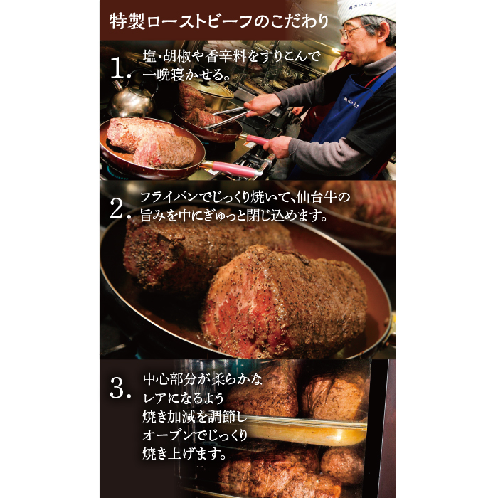 ■セット内容仙台牛ローストビーフ約400gローストビーフソース20g■アレルギー特定原材料8品目小麦■賞味期限冷凍10日目安■生産国加工地:日本