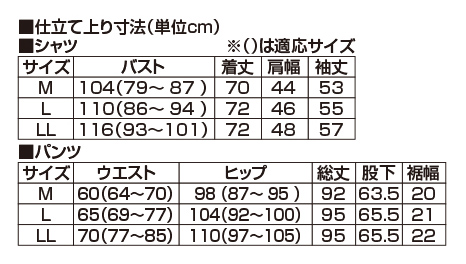 ■セット内容シャツ、パンツ■材質・素材・成分ポリエステル100%■商品仕様シャツ:左胸ポケット付パンツ:ウエスト総ゴム(ゴム取り替え口あり)■洗濯表示・お手入れ方法洗濯機(ネット使用)■生産国中国