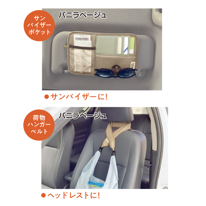 カースペースポケット×1、荷物ハンガーベルト×1、サンバイザーポケット×1