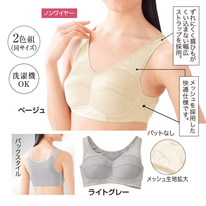 ■セット内容同サイズ2色組(ライトグレー、ベージュ)■材質・素材・成分本体:綿60%、ナイロン35%、ポリウレタン5%メッシュ部分:ポリエステル95%、ポリウレタン5%■洗濯表示・お手入れ方法洗濯機■生産国中国