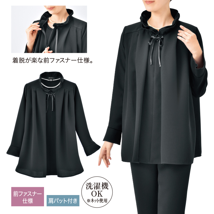 ■材質・素材・成分ポリエステル100%■商品仕様色:ブラック前ファスナー開き、肩パット付■洗濯表示・お手入れ方法洗濯機(ネット使用)■生産国日本