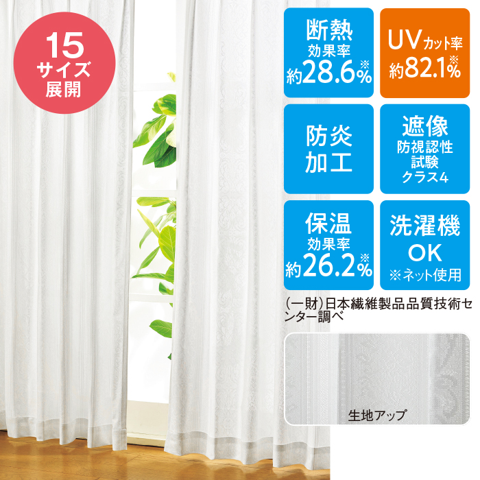 ■セット内容本体、アジャスターフック(カーテン1枚につき7本)■商品サイズ約幅100×丈193cm 2枚組■材質・素材・成分ポリエステル100%■商品仕様1.5倍ヒダ2つ山仕上げ■洗濯表示・お手入れ方法洗濯機(ネット使用)■生産国日本