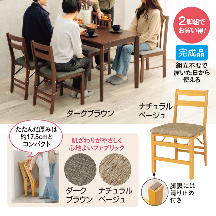 ■セット内容本体×2脚■商品サイズ約幅42×奥行48×高さ76cm(座面高43.5cm)折りたたみ時:約幅42×奥行76×高さ17.5cm■商品重量約6kg耐荷重:約80kg■材質・素材・成分本体:天然木、張地:ポリエステル、中材:ウレタンフォーム■完成品■生産国ベトナム