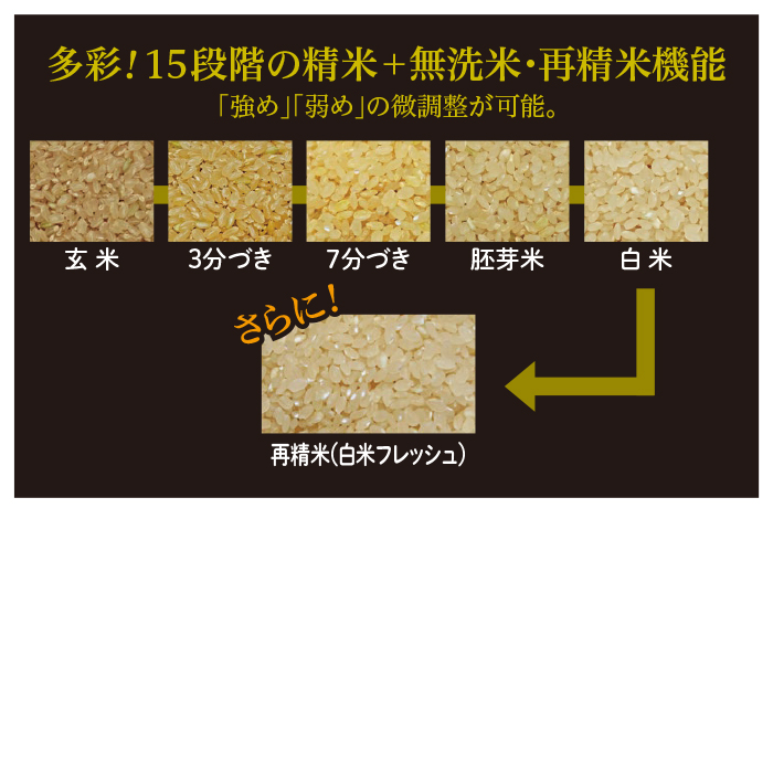 15段階精米・無洗米・再精米モード