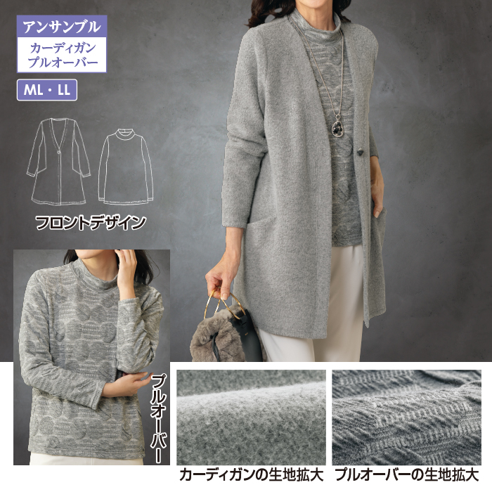 ■セット内容カーディガン、プルオーバー(カラー:グレー系)■材質・素材・成分ポリエステル86%、レーヨン12%、ポリウレタン2%■商品仕様カーディガン:前ボタン全開(1個)、左右ポケット■洗濯表示・お手入れ方法手洗い■生産国中国■要注意事項※着用中の摩擦や洗濯により、毛羽立ちや毛玉(ピル)が生じる事があります。※プルオーバーは裁断により柄位置が写真と異なる場合がございます。