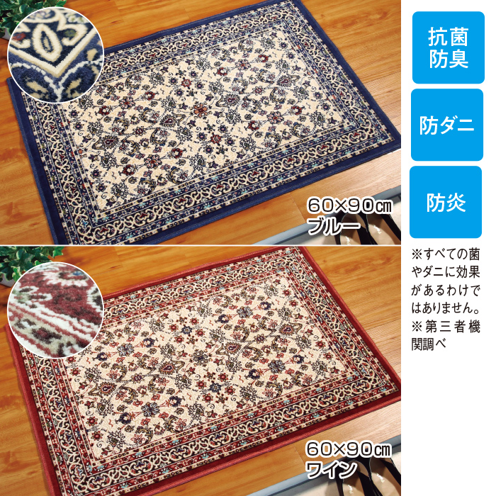 ■商品サイズ約70×120cm■材質・素材・成分アクリル65%、綿35%■商品仕様パイル長さ:約3mm、裏面:不織布貼り、抗菌防臭・防ダニ加工基布使用、防炎加工、床暖・ホットカーペット対応、折り畳み収納可■洗濯表示・お手入れ方法洗濯機(ネット使用)■生産国日本■要注意事項※折りたたんだ状態でお届けします。※サイズにより柄の出方が異なる場合があります。※ドラム式洗濯機はお控えください。