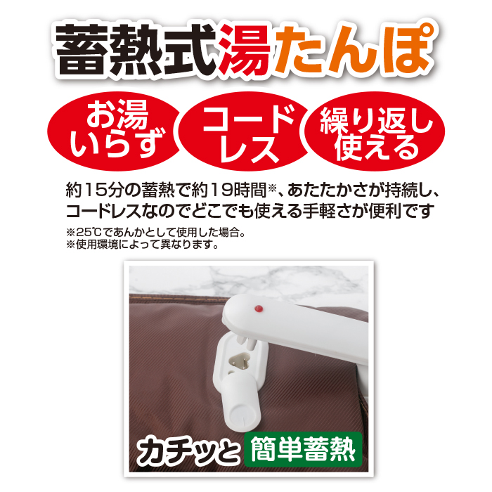 保温時間目安:最大約19時間(室温25℃であんかとして使用した場合。※使用環境によって異なります。)