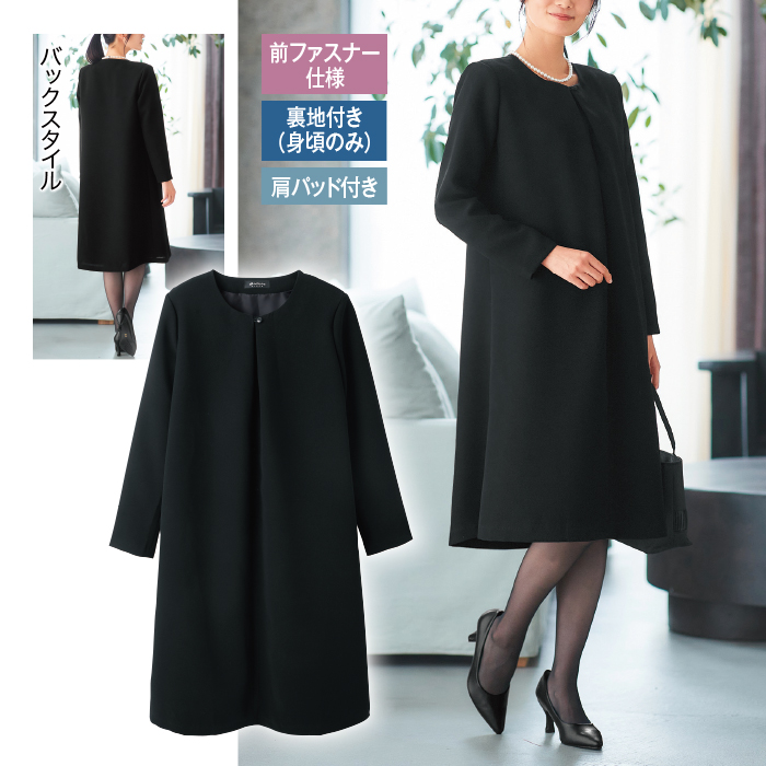 すっきり見えてゆったり着られるフォーマルワンピース。