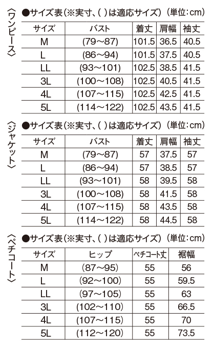 ジャケット・ワンピース・ペチコート:ポリエステル100%