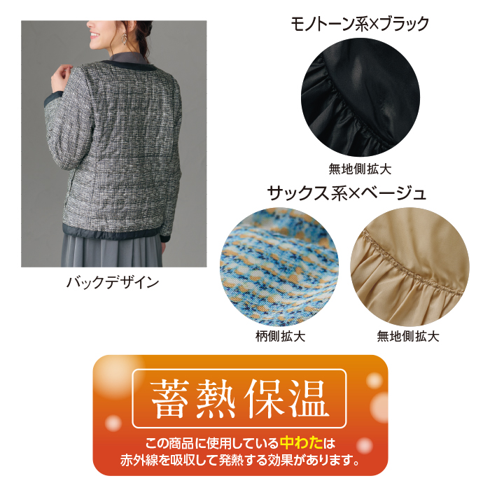 ■材質・素材・成分柄部分:ポリエステル100%無地部分:ナイロン100%中わた:ポリエステル100%■商品仕様前ファスナー全開、左右ポケット付(柄側2、無地側2)■洗濯表示・お手入れ方法ドライ■生産国中国■要注意事項※ワンピース、アクセサリー、バッグは参考商品です。