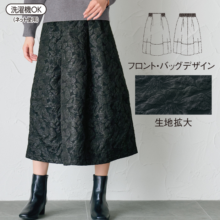 ふくれジャカードの陰影で表れる花柄がエレガント。