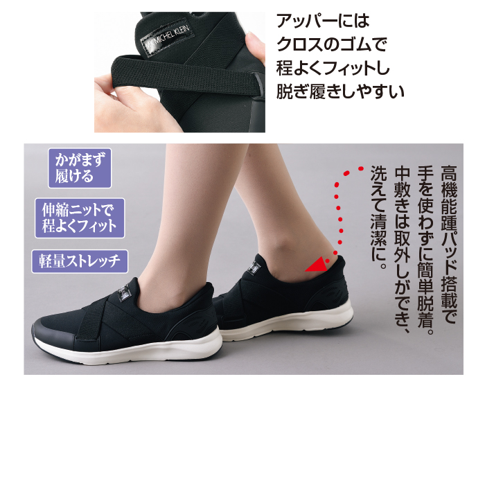 手を使わずに脱ぎ履ぎできる!軽量ストレッチシューズ。