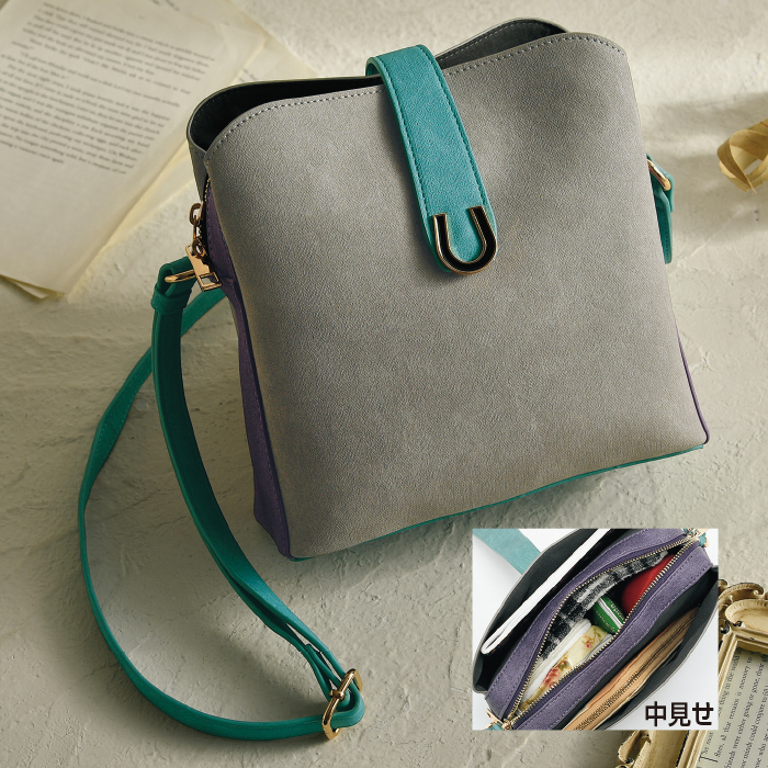 ユニークな配色と馬蹄モチーフの金具がアクセント