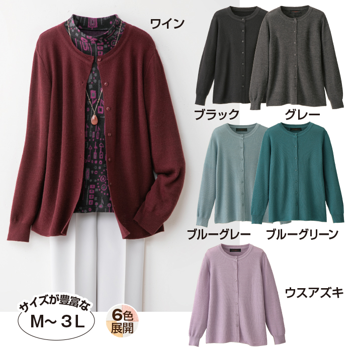 おしゃれに冬を装う、着こなし自在の丸首カーディガン。